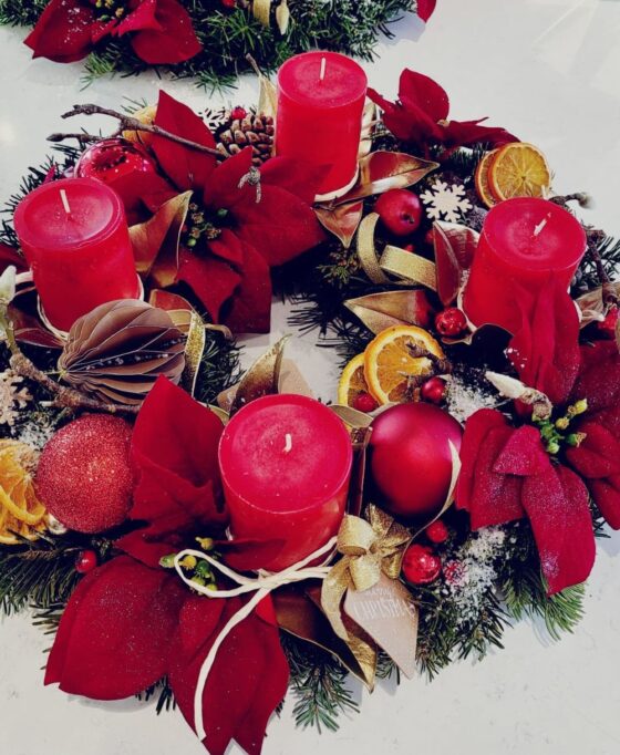 Advent Wreath – Natural, Red Tones, Fir & Orange Slices
