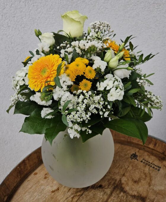 This bright bouquet combines yellow and white flowers to create a fresh and sunny arrangement. Perfect for adding a touch of cheerfulness and purity to any space. Simeoni Fleurs. Your trusted florist in Geneva since 1963. Flower delivery in Geneva. Discover our fresh and elegant bouquets for all occasions, carefully crafted by our artisan florists. Fast and personalised service. Satisfaction guaranteed.
