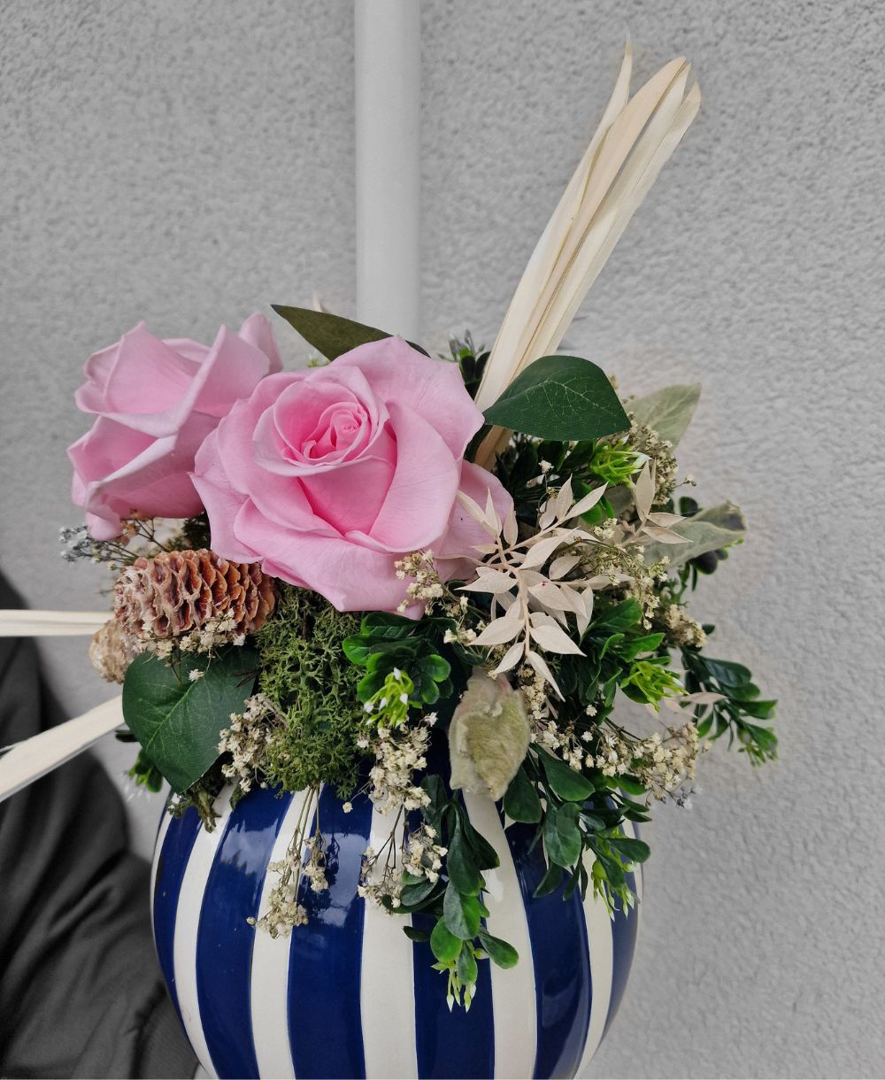Bring a touch of natural elegance to your home with our bouquet of preserved and dried flowers, embellished with decorative lemons. Presented in a stylish blue and white striped vase, this unique bouquet combines charm, visual freshness and durability. Each arrangement is carefully handcrafted with flowers selected for their quality and longevity.